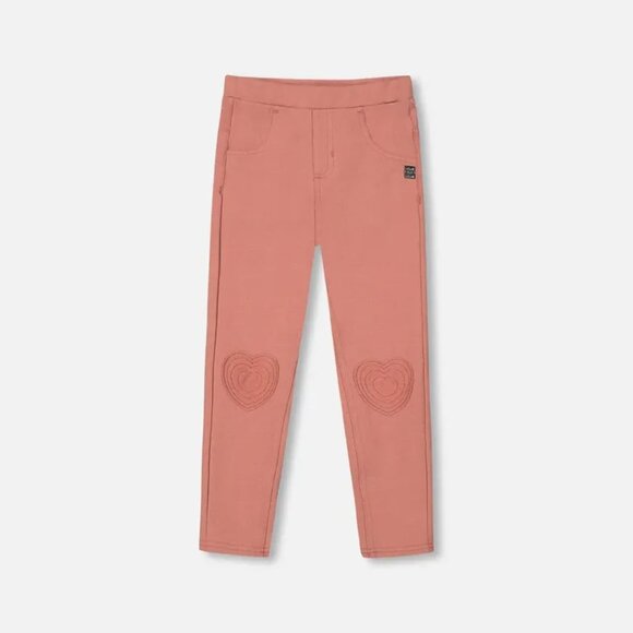 Deux Par Deux Fleece Treggings With Knee Patch Pink Cinnamon kids pants