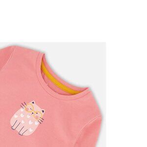 Deux par Deux Long Sleeve T-Shirt With Frills Rosette Pink Cat 12M