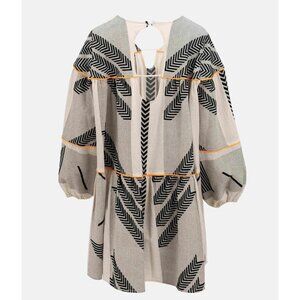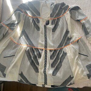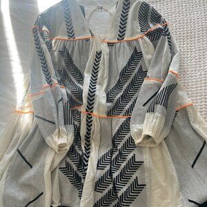 This is a beautiful boho dress worn once - I have sensitive skin so cut off the main tag; however, you can see the second label in pictures I posted. I love this dress - perfect for the beach, taking on vacay, or just as a cover up after going for a dip. Made in Greece and really great quality dress. It is a very relaxed loose fitting dress so could fit all sizes.