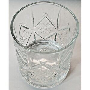 Excellent condition Dewar's True Scotch Old Fashioned Clear Whiskey Celtic Truth Knot Embossed Glass.