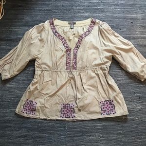 Dex 100% Cotton Embroidered Peasant Blouse 3X