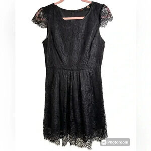 Dex Black Lace Dress, cap sleeves, lined, Small. Pretty, Whimsical, Goth, Prom
