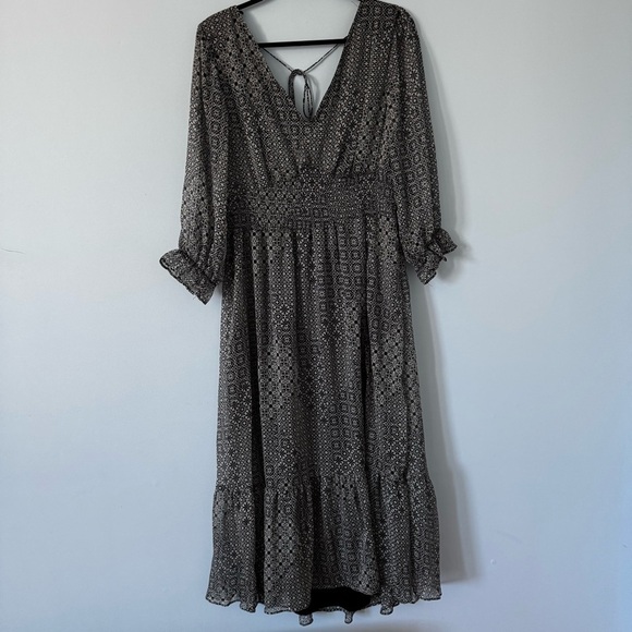 Dex Black & White Boho Maxi Dress – Smocked Waist, V-Neck, XL
