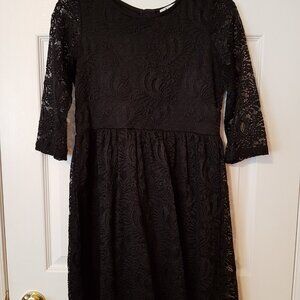 Dex Girls Formal Party Dress ~ Deep Black with Black Lace Overlay ~ 2 Layers ~ Sz. 14 ~ EUC ~ Purchased at The Bay for $79 ~