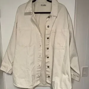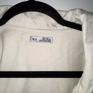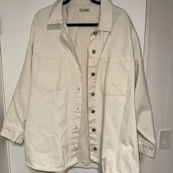 Effortlessly chic utility jacket by Dex. Features a button-up front and two chest pockets. Ideal for layering.