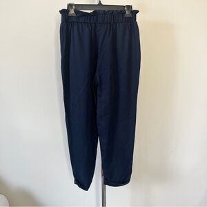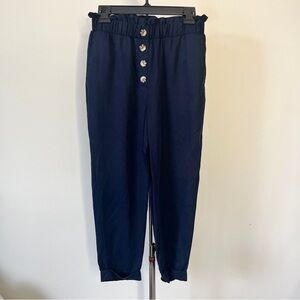 Dex Paperbag Waist Tencel Trousers Joggers Pants Navy Tortoiseshell Buttons Sz S