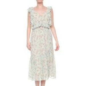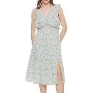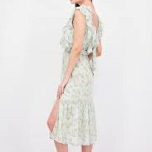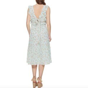 Dex Ruffled-Bodice Tie-Back Floral Dress Midi Mint Floral XL