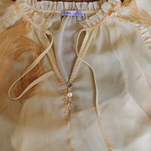 Dex Sheer Shirt Frill Boho Yellow Gold Feathers M