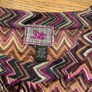 Delicate 100% sheer silk blouse by Dex. Width at bust is 14". length of blouse is 24" from neck to bottom. Longer shirt style blouse, covers the butt. barely been worn. in great condition.