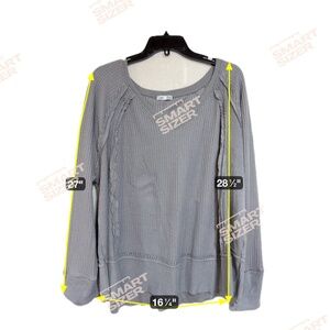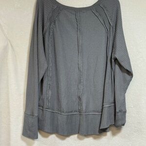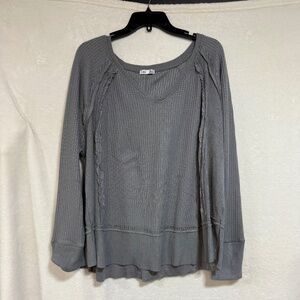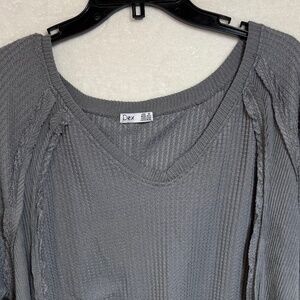Dex Top Women's 3X Gray Waffle Knit Round Neck Wide Long Sleeve Pullover