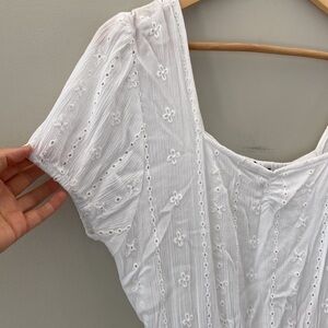 Dex White Eyelet Smocked Tie Back Summer Romper