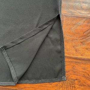 Description: Black Wide Leg cropped pants with white stitching and small slits on either side. Drawstring elastic waist