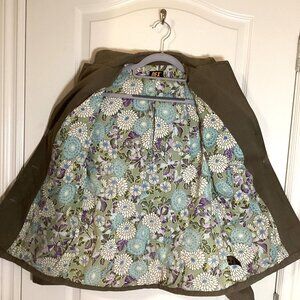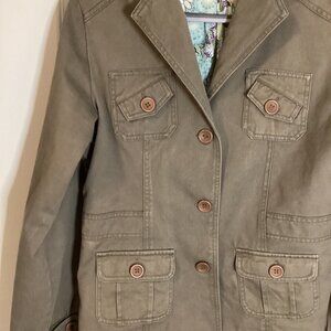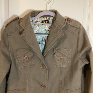 Dex Women's Army Style Jacket Size M Pockets Floral Lining Embroidery Detail