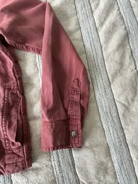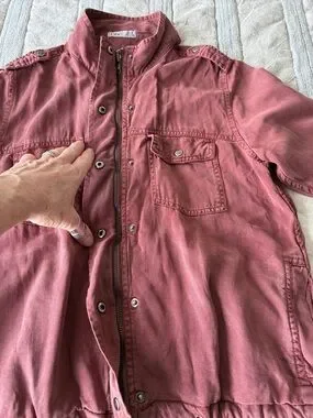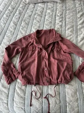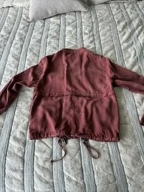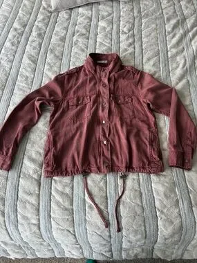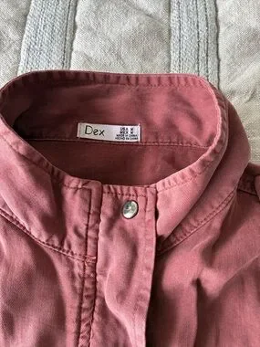 Lightweight and soft Tencel fabric utility jacket by Dex in a beautiful rust tone. Button-front and zipper closure with chest flap pockets with snaps and cuffs with snaps. Adjustable drawcord hem for a custom fit. Soft, casual fabric ideal for layering.