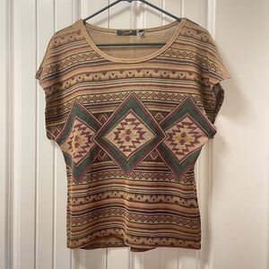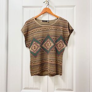 Dex Aztec Print Brown Knit Tunic Blouse - S
