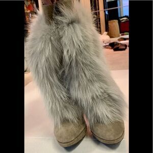 Di Beatrice Gray suede rabbit fur boots size 39. These boots have never been worn.