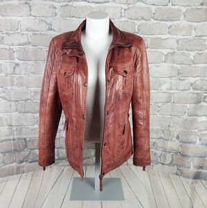 Di Capra Int Moto Leather Jacket Mottled Two Tone Oxblood Size Small