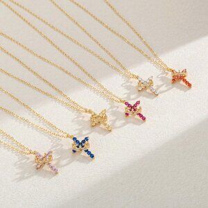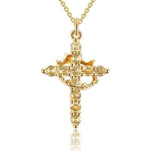 Diamond Cross Necklace for Women Crown Pendant Gold Silver Birthstone Gift