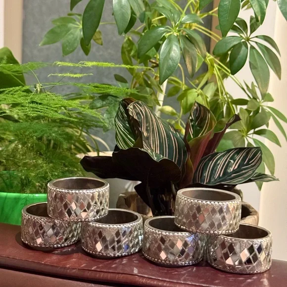 Your dining table will sparkle, with these diamond pattern, silver napkin rings.
