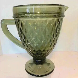 Diamond Point Art Deco Avocado Pressed Glass Pedestal Pitcher. Vintage inspired.