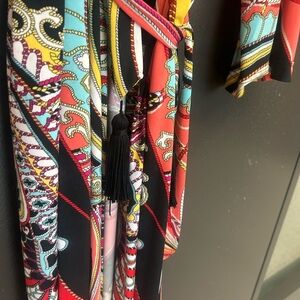 Diamond Tea M vintage robe- tasseled ropes- and / small snaps above waist closure! Material and measurements in photos- this is an extremely rare and bright and amazing pattern- no filters used it’s that bright (I never ever use filters) has a wide sleeve- almost a sleeve bell bottom- in wonderful condition- seems almost new!