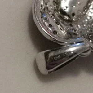 Pendant has three natural clear diamonds has a stamp that says "Brass HOU" it's size is 5/8" x 5/8"