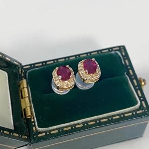Diamond ruby ear stud with 18k solid gold