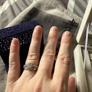 Beautiful 14k white gold curved wedding band, I believe it's a size 6, but easily resizable, shown with engagement ring for example( not included in listing) * I WILL ONLY SELL THROUGH POSHMARK, SCAMMERS DONT WASTE YOUR TIME *