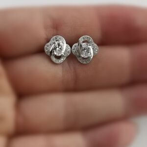 #sterlingsilver #loveknot #studearrings #cubiczirconia #diamonelle #silverearrings