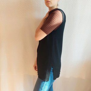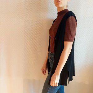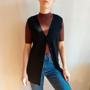 Diana Gallesi black sleeveless vest/ Button closure/ side slits/ V-neck/ The composition label is erased, but it says a blend of 50% wool, 50% polyester/ soft and comfortable fabric/ Italian company/ in perfect condition