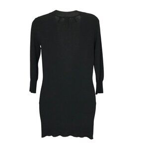 Diane Von Furstenberg 100% Merino Wool Black Extra Long Cardigan Size P 3/4 Length Sleeves Button Down With Two Front Pockets