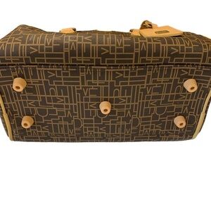Diane Von Furstenberg DVF Brown Tan Leather Monogram Travel Duffel Bag Tote