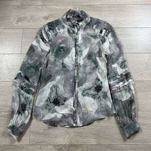 Diane Von Furstenberg DVF Pintura Silk Floral Print Button-Up Blouse Top