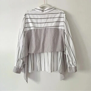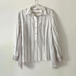 Diane Von Furstenberg Desiree White Black Beige Striped Collared Shirt S…