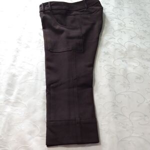 Description- Ewan Style. Capri. 2 front pockets, hidden hook and eye closure with zipper, 2 back slit style pockets. Very fine stitching detail throughout. Material is soft and feels very nice. There is stretch to this which will help make these extra comfortable. Official color is Choco, these are a medium matte chocolate shade.