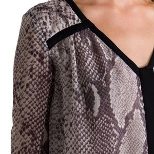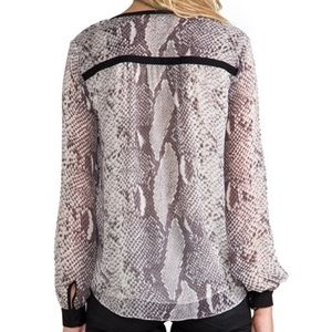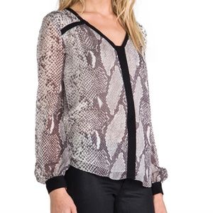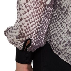 Diane Von Furstenberg Lane Chiffon blouse. Color: Python ( hues of grey)SIZE: 6 (armpit to armpit measures 18") The Diane von Furstenberg Lane blouse has a quiet, subtle print. Features: