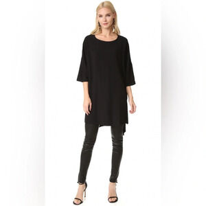 An effortless DVF dress with a chic, relaxed silhouette. Draped elbow-length sleeves. Uneven hem with side slits. Unlined.