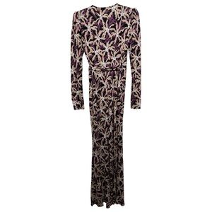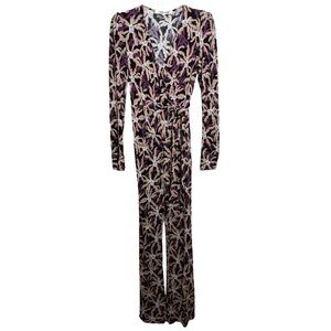 Diane Von Furstenberg Seoul Printed Wrap Jumpsuit Sz 4 Purple Tropical One Piece
