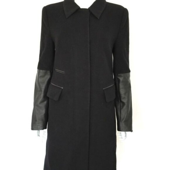 Diane Von Furstenberg Sterling Wool-Cashmere CoatWith Leather Details Size 8