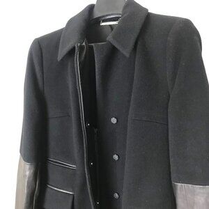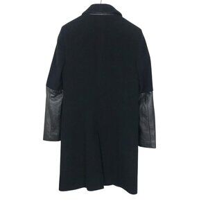 Diane Von Furstenberg Sterling Wool-Cashmere Double Breasted Black Coat With Leather Details Size 8