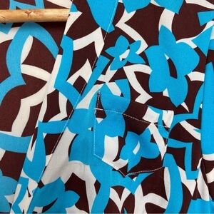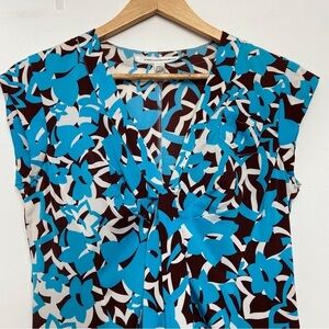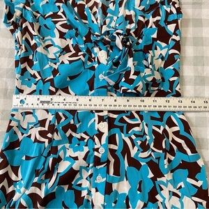 Diane Von Furstenberg silk dress lightweight ecru brown cerulean blue size 2