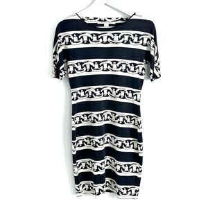 Diane Von Furstenberg Brenna 100% Silk Dress in Chain Bands Black Sz 6