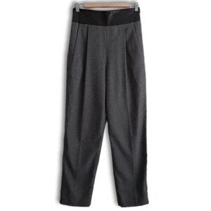 Diane von Furstenberg DVF / Ellis Leather Trim Waist High Rise Gray Trousers 4