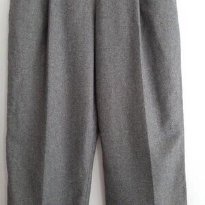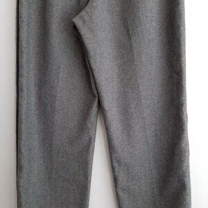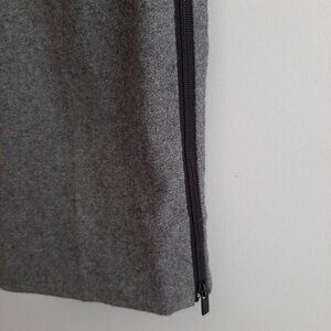 • High waisted, soft dress pants in grey with functional zippers running full length of the pant sides and two front pockets.