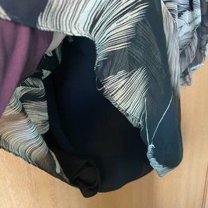 This is a lovely flow~y blouse. It has a semi sheer outer layer with a black opaque tank top underneath. Sleeves