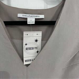 Timeless Diane von Furstenberg sleeveless mini dress in a soft grey viscose. Clean, tailored silhouette that works perfectly for the office, events, or dressed up with heels.