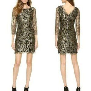 DVF "Zarita" dress in metallic gold lace. 3/4 length sleeve and mini dress.