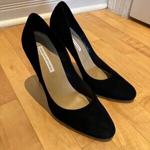 Diane von Furstenburg black suede almond toe stiletto heels size 10B