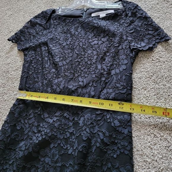 Gorgeous fitted dress from Diane Von Furstenberg. Black lace pattern with lining. Rear zipper, 1/4 sleeves. The pictures do-nothing do this dress justice, it's beautiful.