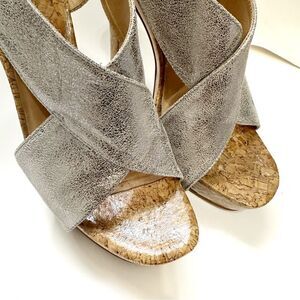 Diane Von Furstenberg Zia Metallic Crisscross Cork Platform Sandals Size 7.5